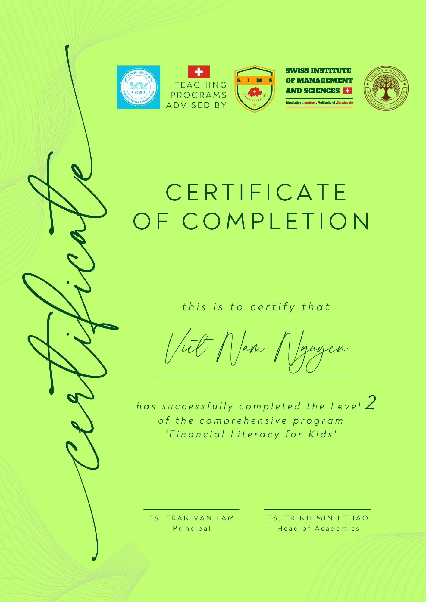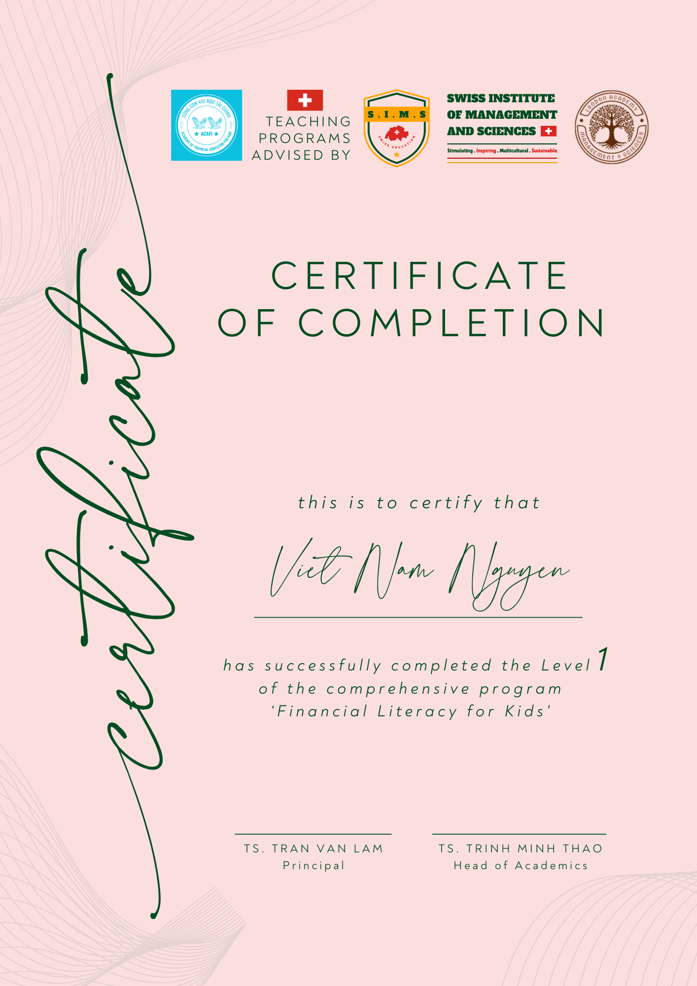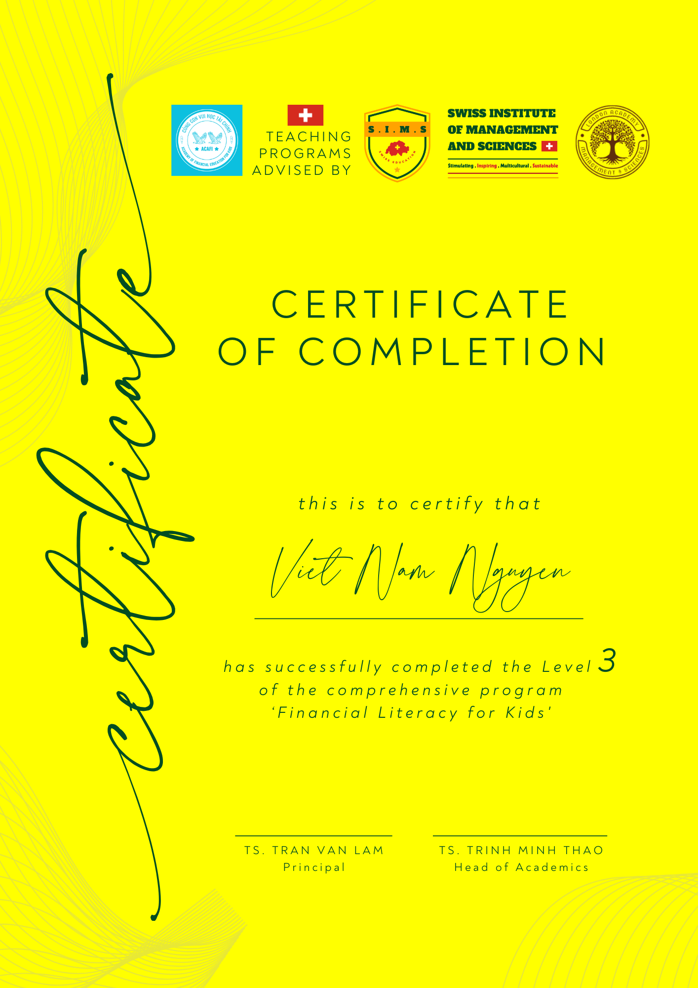 Nếu trẻ lớn lên mà thiếu nền tảng tư duy tài chính sẽ dẫn đến hiểu sai về tiền bạc, không nhận thức được ý nghĩa của thu nhập & sức lao động. Khi thiếu kiến thức về tiết kiệm & chi tiêu thường dễ sa vào bẫy nợ nần hoặc lâu dài lệ thuộc bố mẹ, không có tính tự lập. Chương trình đào tạo TƯ DUY TÀI CHÍNH CHO TRẺ được thiết kế theo lộ trình 3 cấp độ xuyên suốt: Ươm mầm Tư duy Tài chính (nhận thức đúng về tiền và giá trị lao động, hình thành thói quen tốt về tiết kiệm), Nuôi dưỡng Tư duy Tài chính (rèn kỹ năng quản lý, lập kế hoạch, ra quyết định, chi tiêu thông minh) và Phát triển Tư duy Tài chính (ứng dụng thực hành, biết quản trị tài chính cá nhân, có tư duy kinh doanh và tinh thần làm chủ). Nhờ lộ trình bài bản và liên tục, trẻ hình thành nền tảng tài chính vững chắc, tư duy độc lập và sự tự tin để thích ứng với bất cứ môi trường nào sau này.